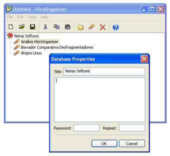 HiznOrganizer permite proteger algunas notas con contraseña, para evitar miradas curiosas, y guardarlas todas en un formato propio.